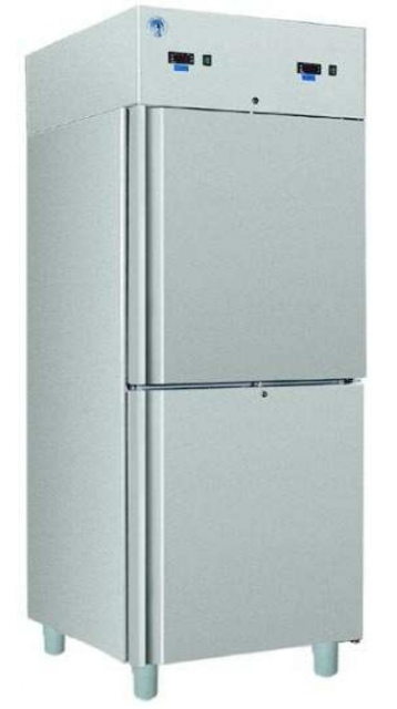 A kombinált hűtőszekrény 2x2 db GN 2/1 méretű polccal, két külön szabályozható hűtőtérrel (1 hűtő és 1 fagyasztó), rozsdamentes acél külsővel és belsővel, állítható lábakkal, elektronikus hőfokszabályozással, digitális hőfokkijelzéssel, automatikus olvadékvíz elpárologtatással, önzáródó ajtóval, ventilációs hűtéssel és zárral rendelkezik.