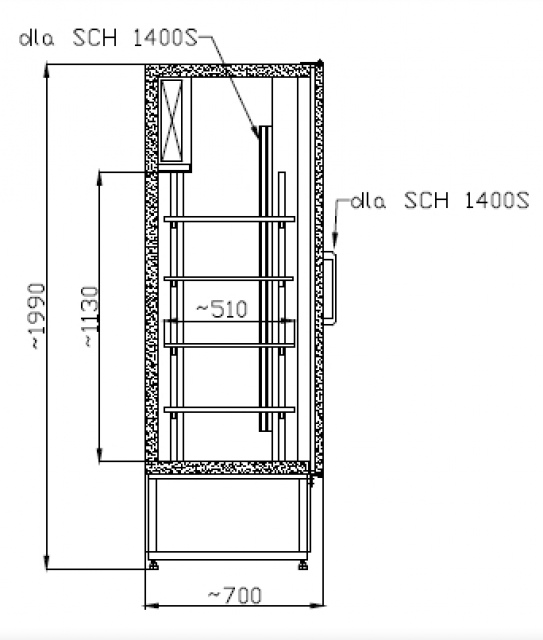 A hűtőszekrény 2x4 db polccal,rozsdamentes acél külsővel-belsővel és állítható lábakkal rendelkezik. Statikus hűtésű és automata leolvasztású. Automatikus olvadékvíz elpárologtatóval felszerelt.